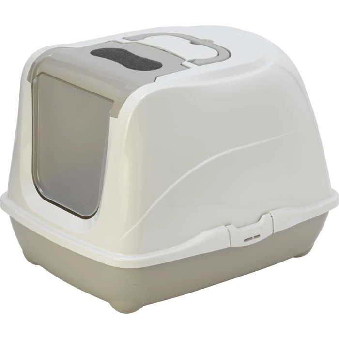 Le bac à litière Loki est élégant et dans une couleur discrète. Il est doté d’une façade qui peut être ouverte ainsi que d’une partie sur le dessus, ce qui vous permet d’accéder facilement au bac. Le couvercle peut également être complètement retiré par les pinces qui sont fixées au bac à litière. Dans le couvercle du bac à litière se trouve une pelle avec laquelle vous pourrez facilement le nettoyer. Vous pourrez également le bouger facilement grâce à la poignée située sur le dessus.
