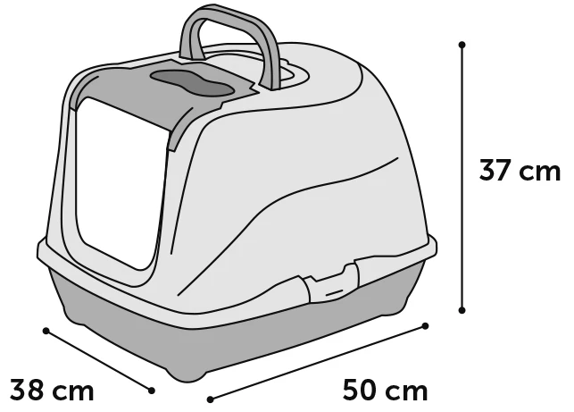 Le couvercle du bac à litière est muni d’une pelle, ce qui facilite son nettoyage. De plus, la poignée située sur le dessus permet de lr transporter facilement.
