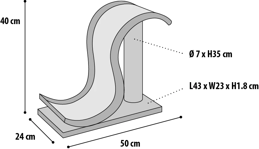 Petit meuble Ă gratter pour les chatons et les chats de petites races. La grande surface incurvĂ©e est recouverte de sisal pour que votre chat puisse s’adonner Ă son passe temps favori : prendre soin de ses griffes.