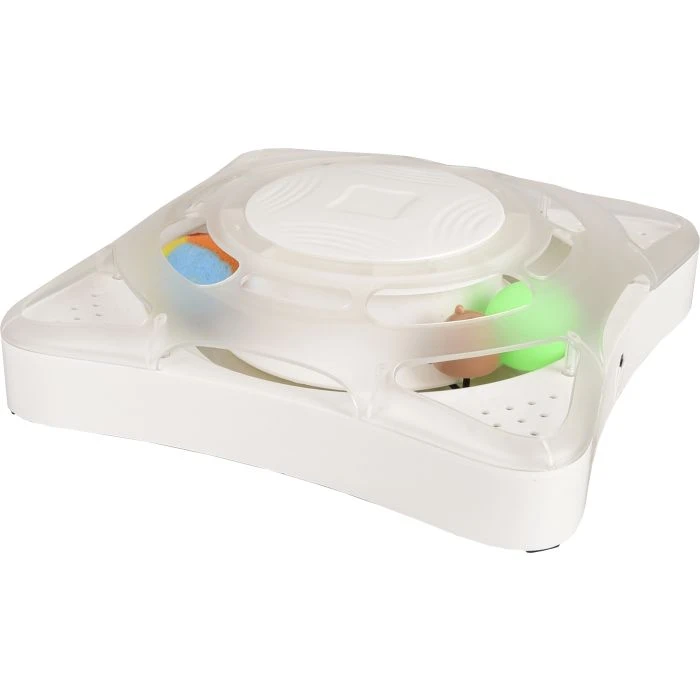 Vous recherchez un jouet pour chat stimulant, alors le Roller Orbit est fait pour vous ! Le Roller Orbit est une souris tournante qui stimule l’instinct de chasse de votre chat. Lorsque le Roller Orbit effectue un mouvement de rotation, la balle émet un son. Heureusement, le jouet peut aussi ne pas faire de bruit. Si vous arrêtez de jouer pendant plus de 2 minutes, le Roller Orbit s’arrête automatiquement.