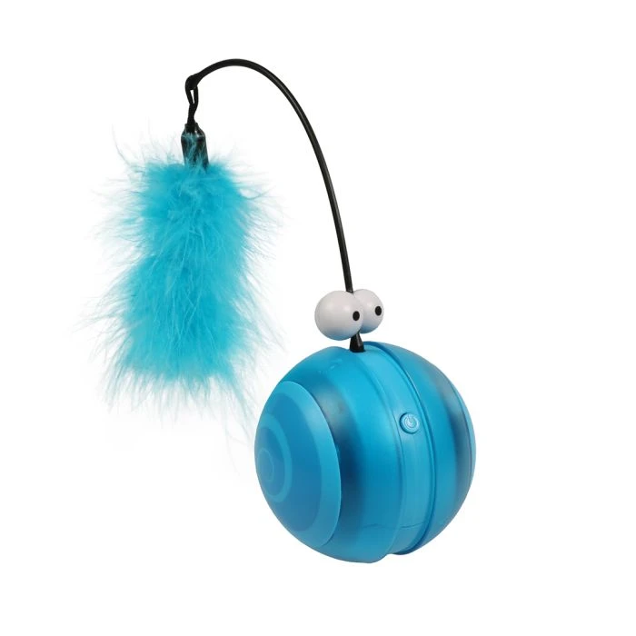 Le Coockoo Flip est un jouet interactif et électronique pour votre chat. Cette balle interactive avec lampes LED clignotantes garantit des heures de plaisir de jeu et stimule l`instinct de chasse naturel de votre chat. En appuyant une fois sur le bouton, la balle commence à rouler. Elle roule d`une façon aléatoire d`avant en arrière, raison pour laquelle elle ne se coince par facilement. Grâce à la minuterie intégrée, la balle s`éteint automatiquement après 15 minutes. En appuyant deux fois sur le bouton, la balle émet un bruit d`oiseau en roulant. Et en appuyant trois fois, la balle s`éteint. La balle est munie d`un bras amovible avec des plumes colorées et une clochette qui feront le bonheur de votre chat. Flip est disponible dans les couleurs Coockoo flashy citron vert, rose et bleu. Elle présente aussi un imprimé tourbillonnant avec les yeux Coockoo amusants.