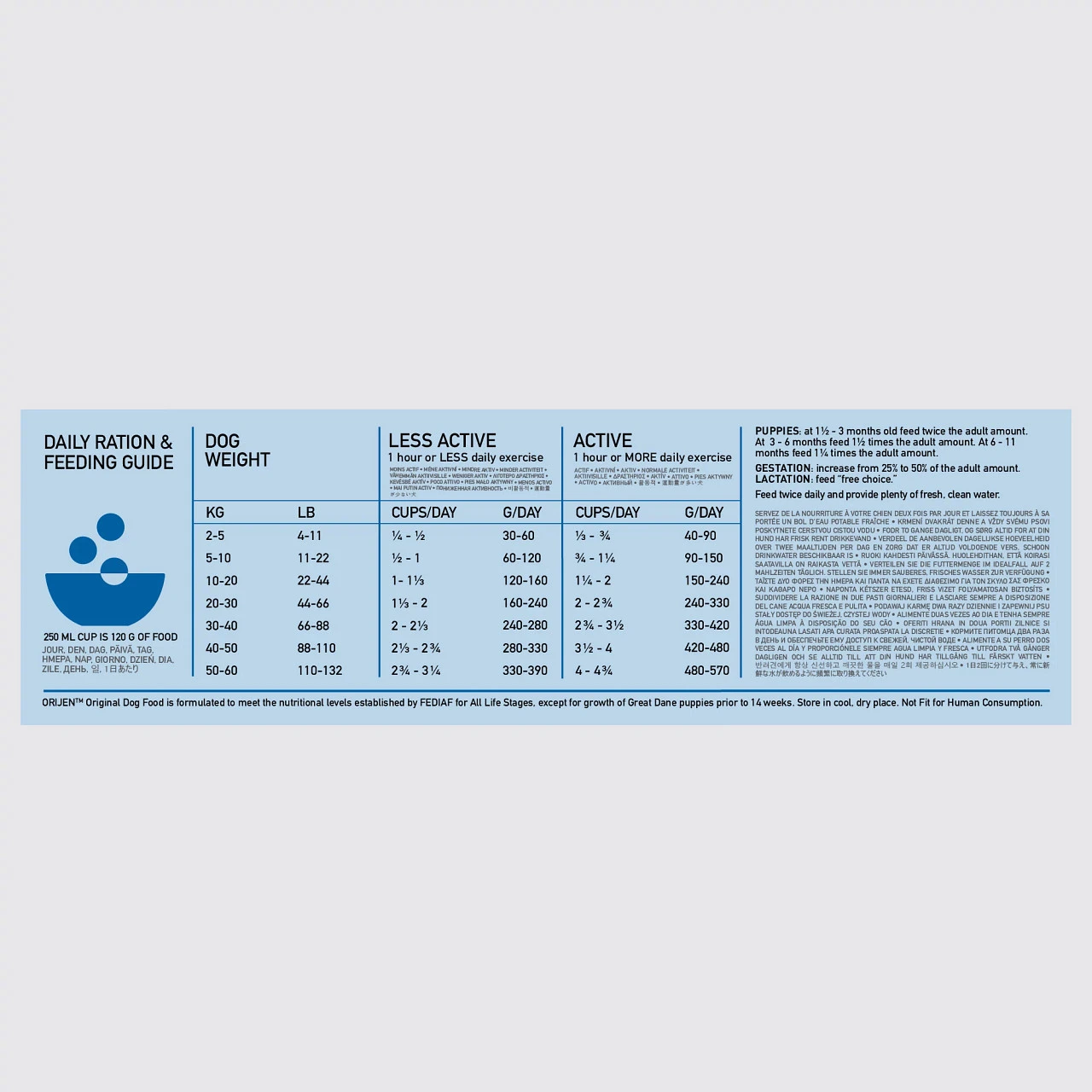 Les aliments naturels d’ORIJEN contiennent une variété inégalée de viande et de poisson frais. Les aliments secs ORIJEN sont préparés avec 85 % d’ingrédients d’origine animale et sont 100 % naturels.