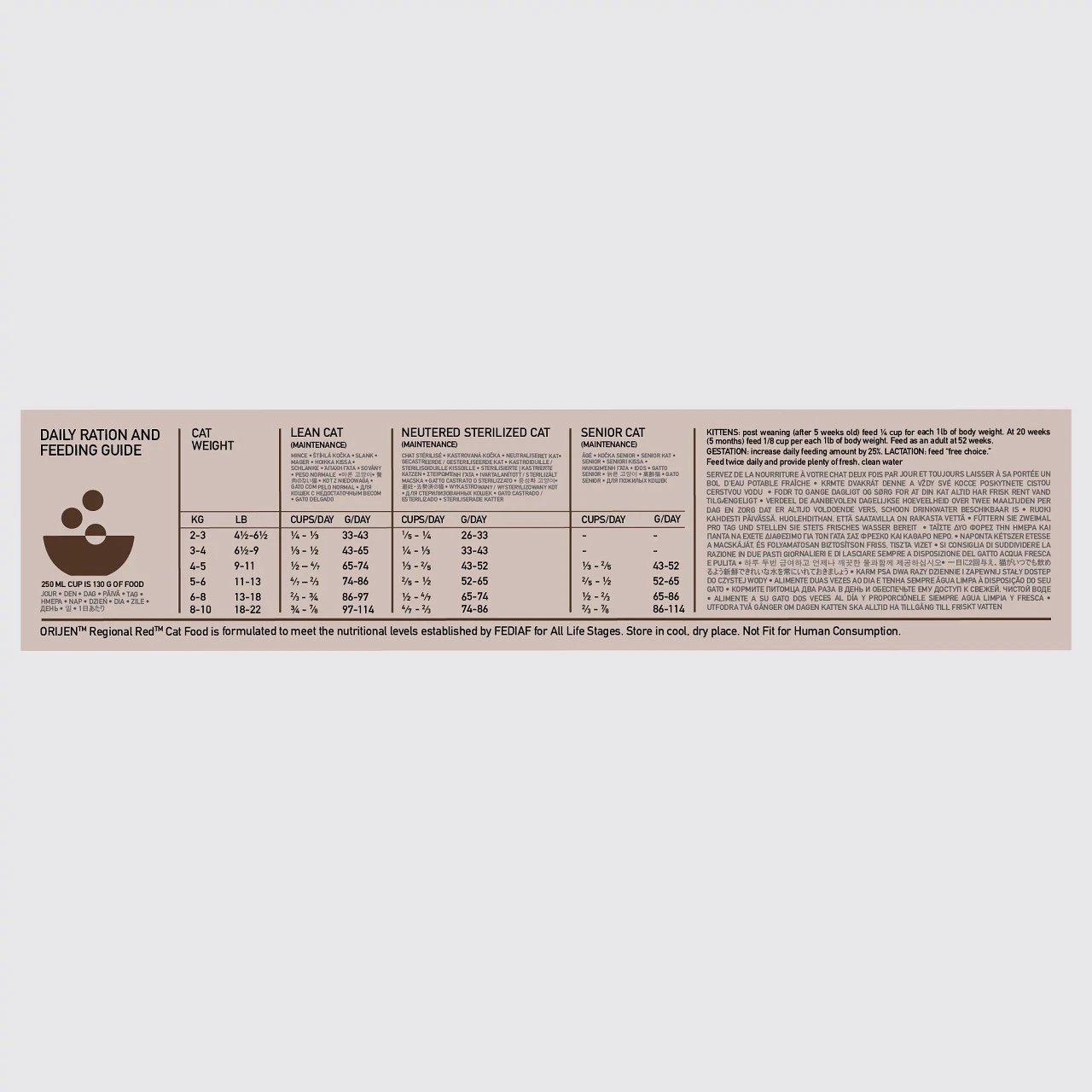 Aidez votre chat à s’épanouir grâce à des recettes riches en protéines qui lui procureront une alimentation optimale. En tant que carnivores, les chats modernes sont construits comme leurs ancêtres et s’épanouissent grâce à un régime alimentaire biologiquement adapté, riche en protéines et en graisses provenant d’une variété d’ingrédients d’origine animale. L’aliment ORIJEN Regional Red pour chats est composé de viande de bœuf cru, de sardines entières, de sanglier, de bison et d’agneau. Avec des ingrédients tels que la viande et le poisson, les organes, les arêtes et les os, l’aliment ORIJEN Six Fish est composée des parties les plus nutritives et juteuses de la proie de votre animal, cela permets aux chats d’accéder aux nutriments dont il a besoin.