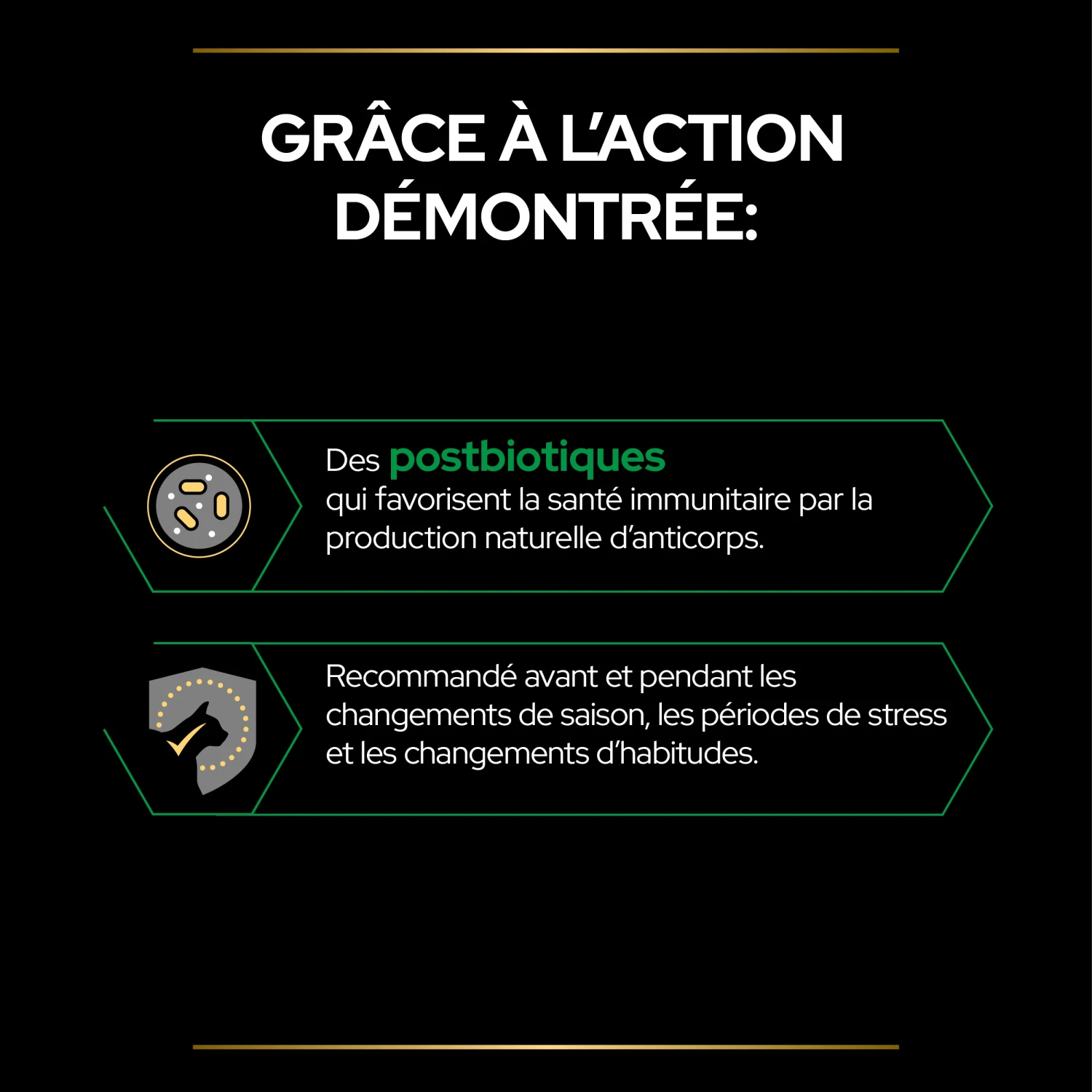 PRO PLAN® a mis au point une gamme d’aliments complémentaires ciblés destinés à agir sur la mobilité, l’immunité, la vitalité, la digestion, la peau & le pelage et le bien-être. PRO PLAN® Natural Defences+ protège votre chat de l’intérieur, grâce à l’action des postbiotiques. Sa formule est scientifiquement conçue pour : – Soutenir le système immunitaire – Aider la production naturelle d’anticorps